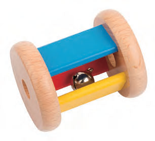 『円筒の木製ラトル』 は、幼児の手と目の協調、握り反射、聴覚を刺激します。