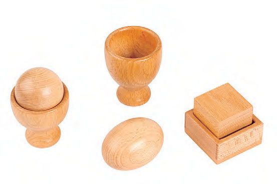 『シェイプソーター』は、2つのパーツを合わせたり外したりするシンプルな遊びを通して、手先の器用さや形の認識力を育てる教具です。両手を使ってじっくり取り組むことで、集中力やバランス感覚も養われていきます。