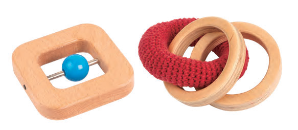 ラトルとリングは、赤ちゃんの自然な握る動きを引き出し、手と目の協応動作(コーディネーション)を促す教具です。触覚・聴覚・視覚の発達をサポートしながら、感覚への気づきや集中力も育てていきます。