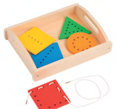 さまざまなカードにひもを通す遊びを通して、手先の器用さ、目と手の協応、そして集中力が育まれます。カードのレベルが少しずつ難しくなるため、達成感も味わえます。